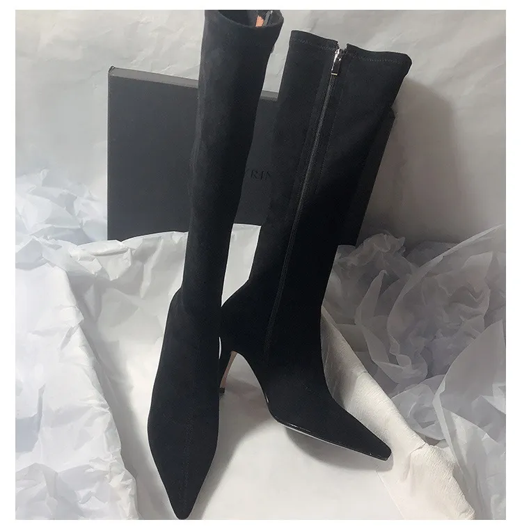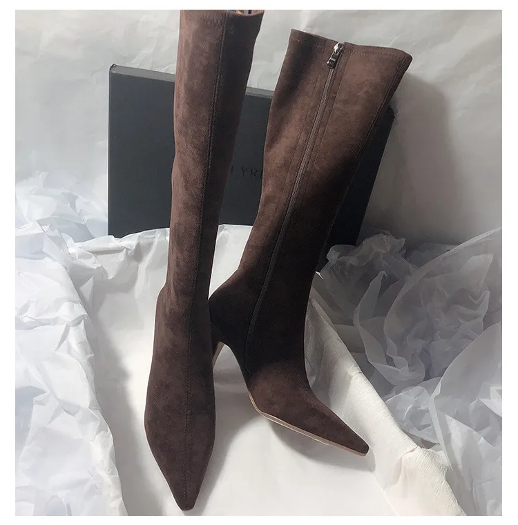 Featuring a convenient side zipper, these boots are easy to slip on and off, making them practical for everyday wear. The high heel adds height and elegance, elongating your legs while providing confidence with every step. Their classic design ensures they pair beautifully with a wide range of outfits – from skinny jeans and blouses to dresses and skirts.