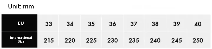 Size: 34, 35, 36, 37, 38, 39, 40