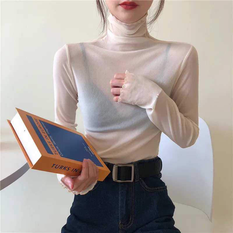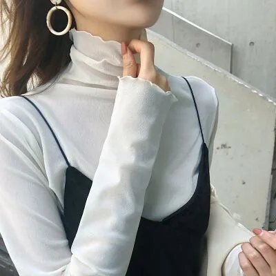 Women's Slim High-necked Long-sleeved Lace Bottoming Shirt