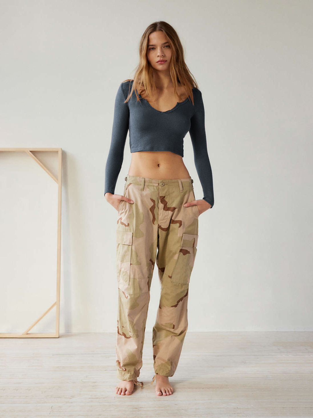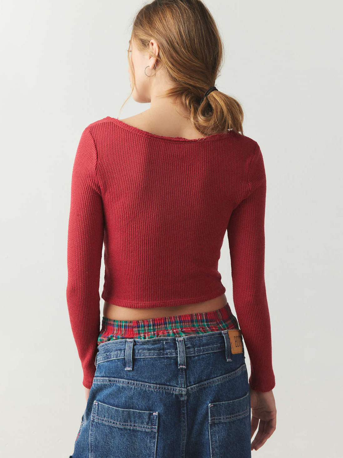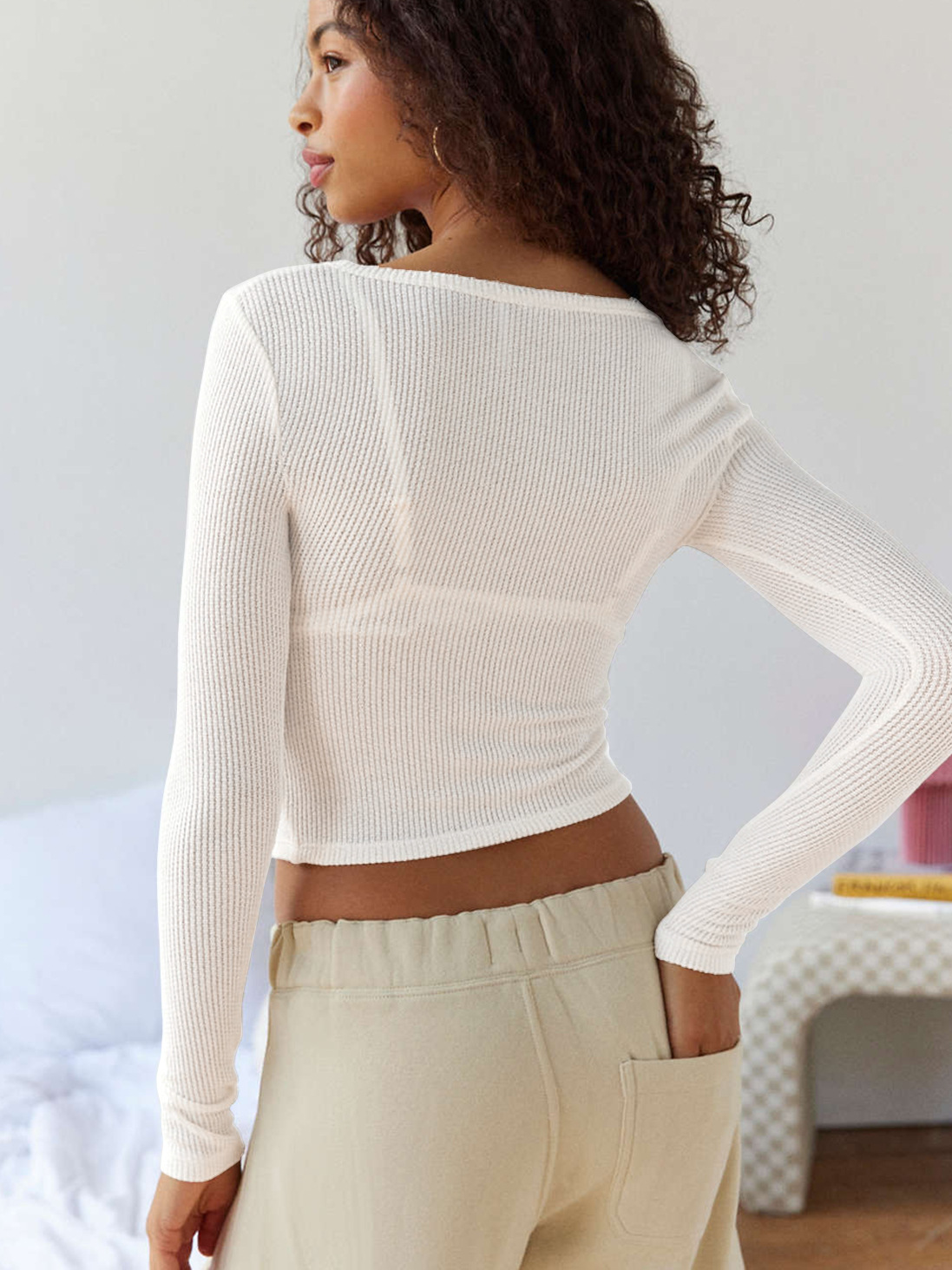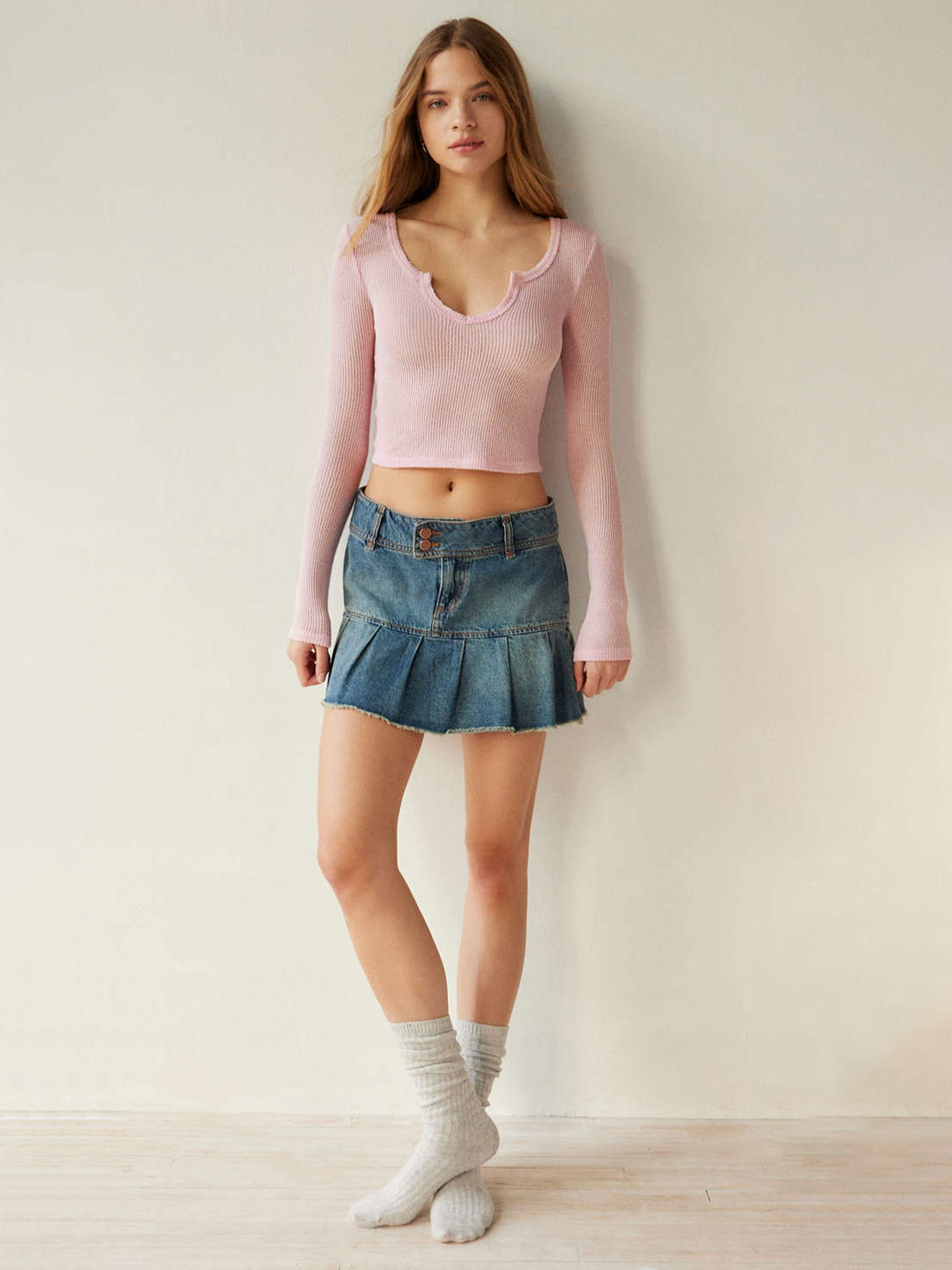 Women's Solid Color Ribbed Slim T-shirt V-neck