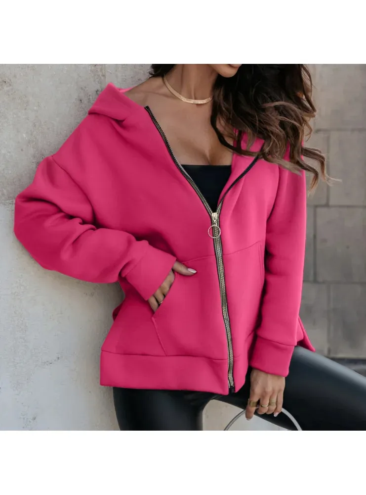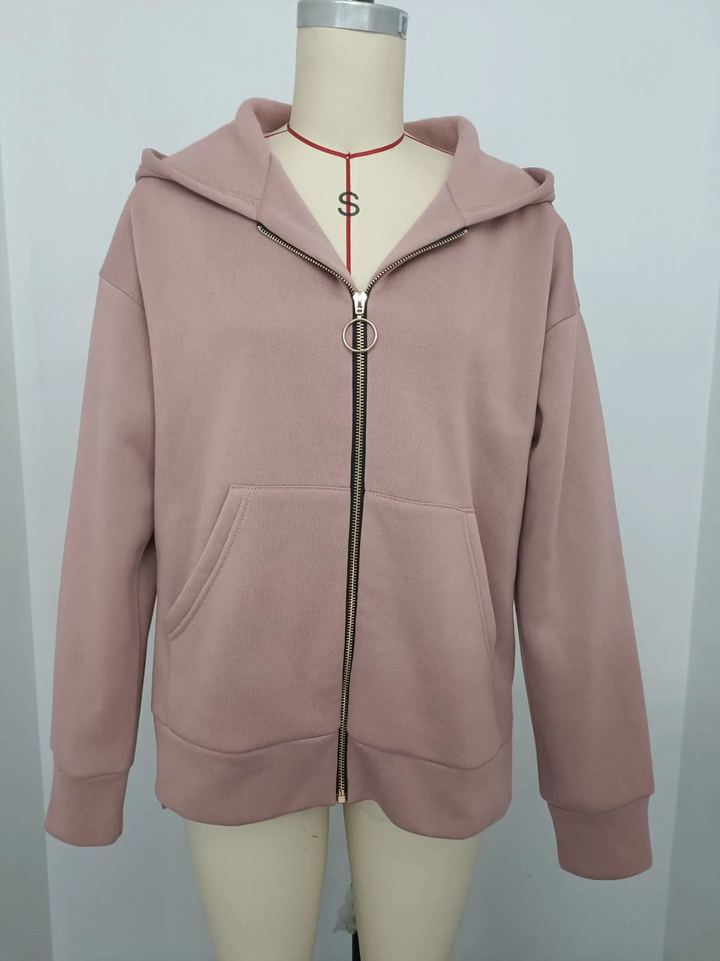 Women's Sports Pocket Loose Zip Casual Hoodie Sweater