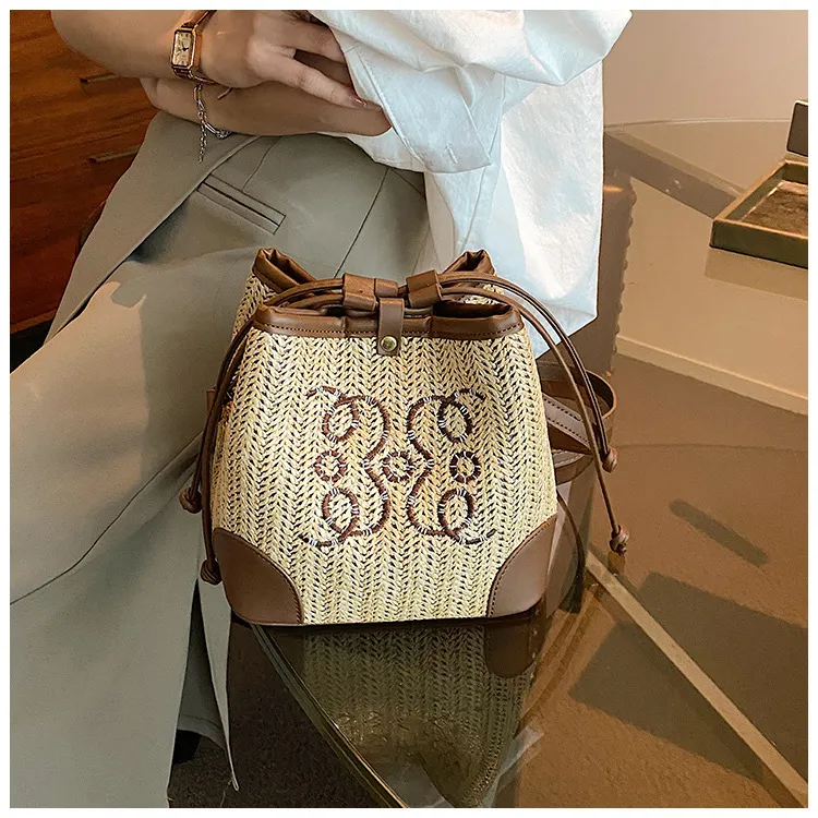 Women's Straw Seaside Vacation Beach Woven Bucket Bag