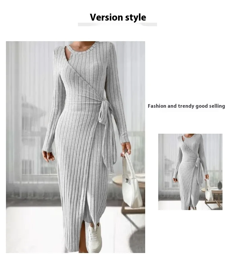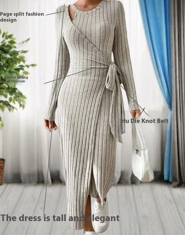 The Women's Striped Fashion Round Neck Long Sleeve Narrow Bow Dress is a versatile addition to any wardrobe. Its classic design, combined with modern details, makes it suitable for various occasions. Whether you're dressing up for work or going out for a casual day, this dress ensures you look your best.