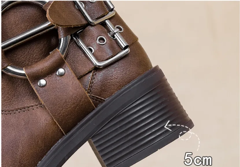 Women's Summer Belt Buckle Chunky Heel Martin Boots