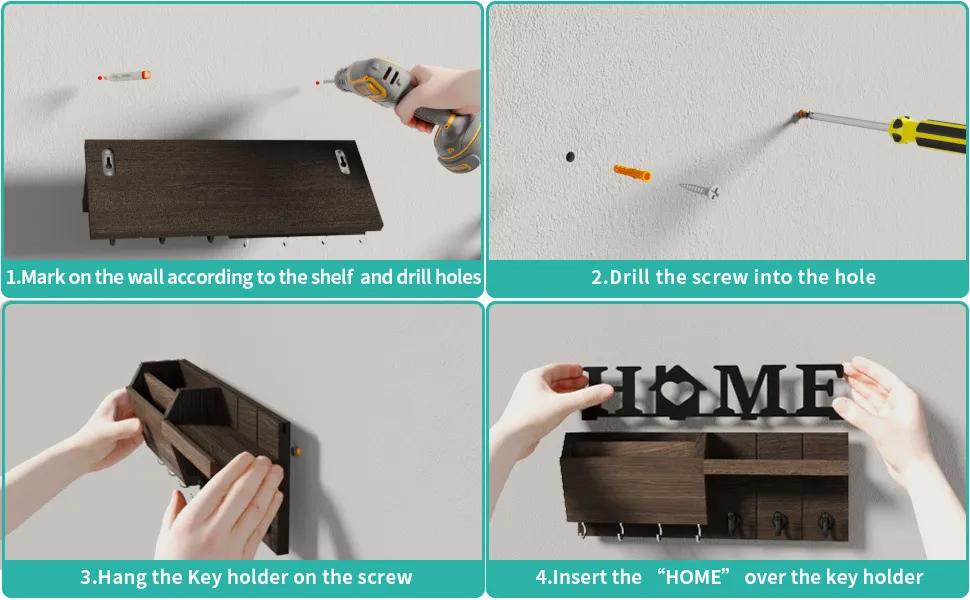 This key holder is designed for easy installation, with simple mounting options to fit on walls in your entryway, kitchen, or office.