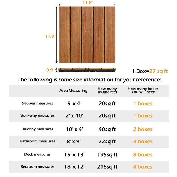 3. Single Tile Size: 11.8" x 11.8" x 0.8" (30 x 30 x 2 cm)