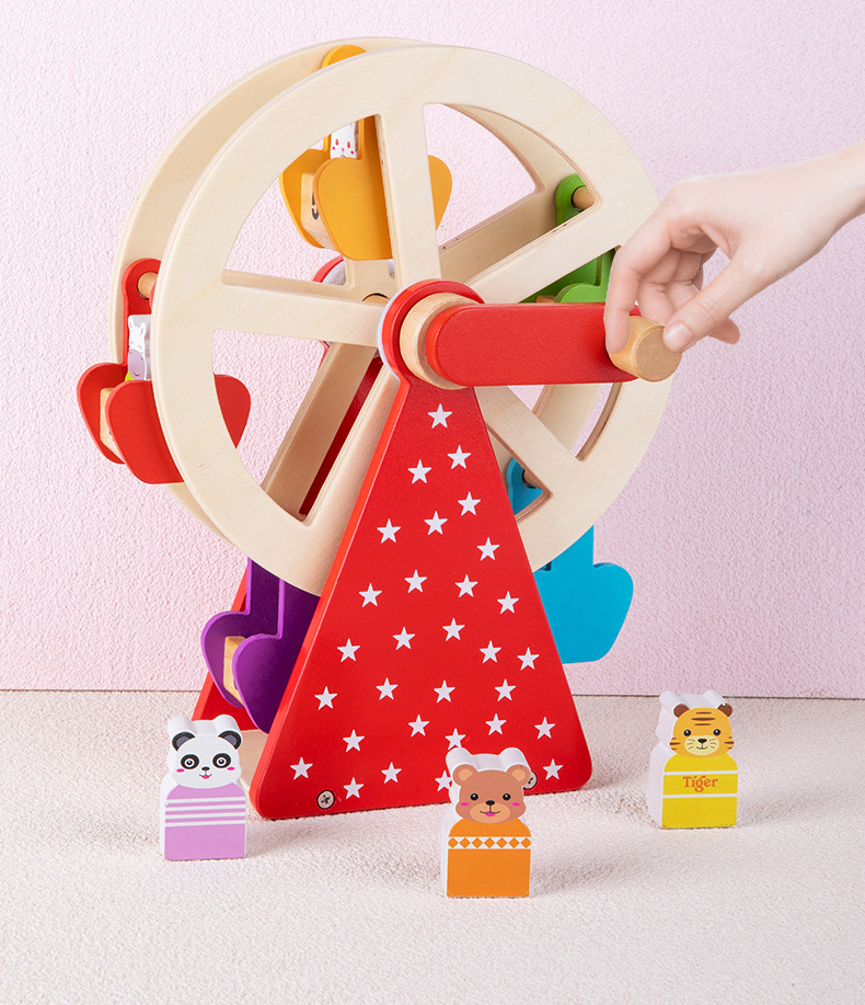 - Operation: Encourage children to turn the Ferris wheel by hand, observing the movement of the animal figures.