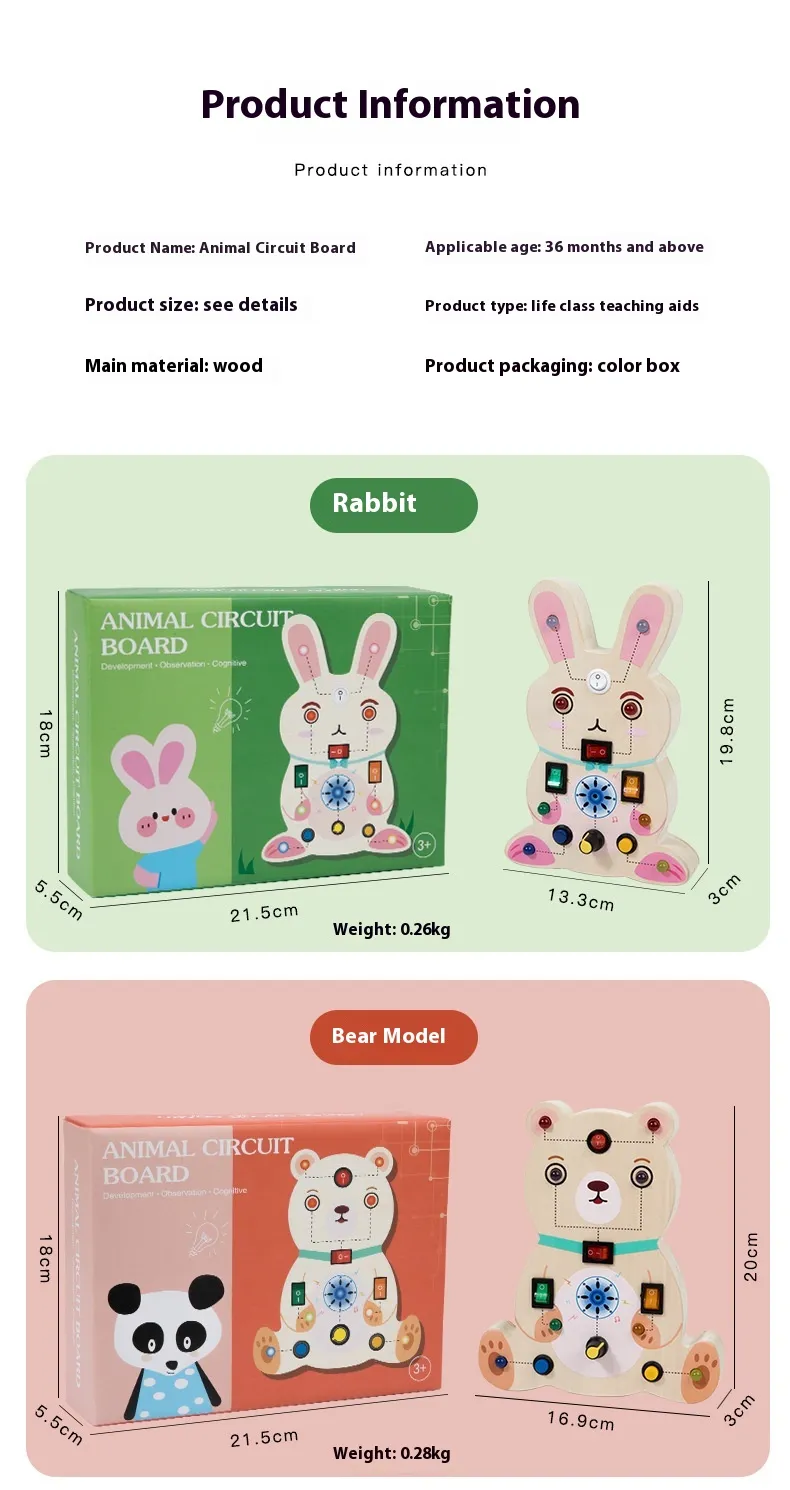 The Wooden Animal Simulation Circuit Board Educational Toy is perfect for parents and educators who want to introduce children to basic electrical concepts while also fostering creativity, problem-solving, and fine motor development. Its unique design combines animals with circuits, creating a fun and educational experience that engages kids and encourages learning through play. The eco-friendly wooden materials, along with the hands-on interactive features, make this toy a safe and enjoyable option for early childhood education.
