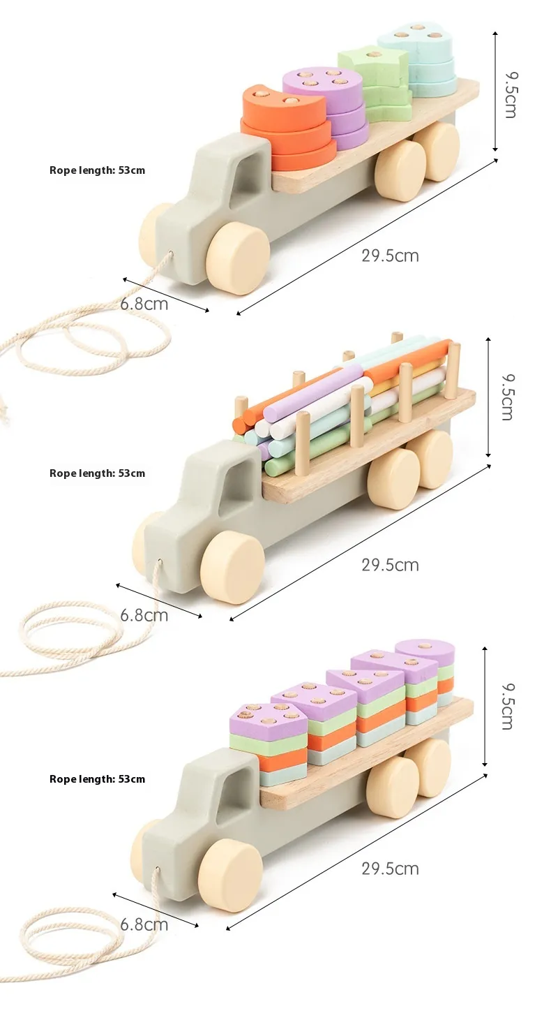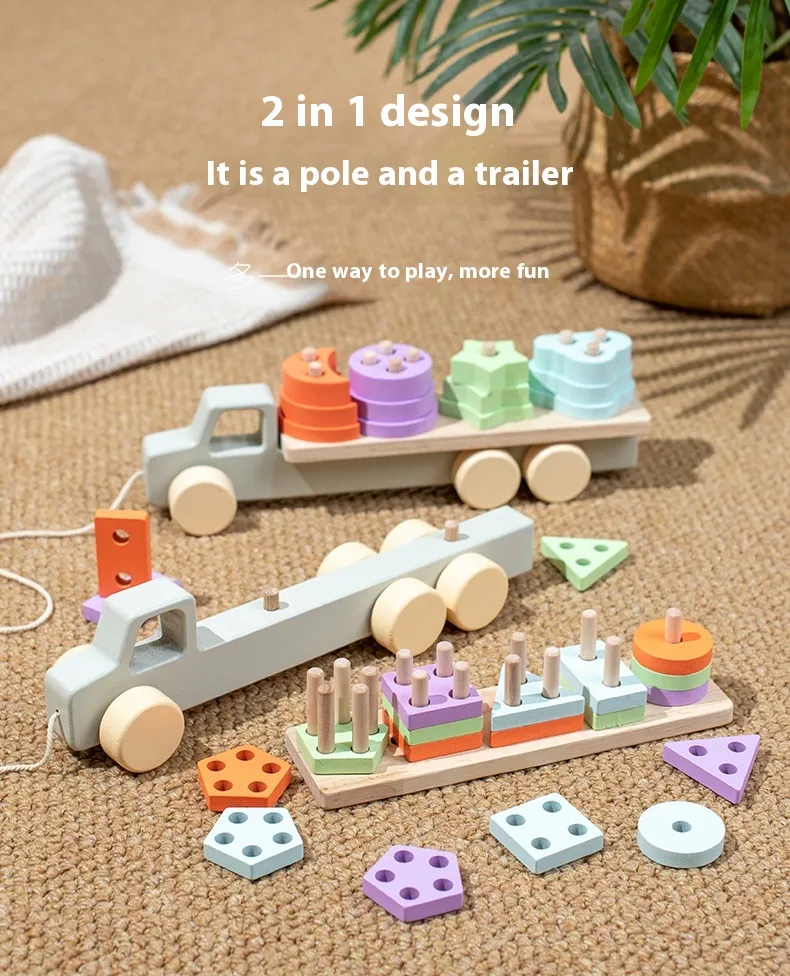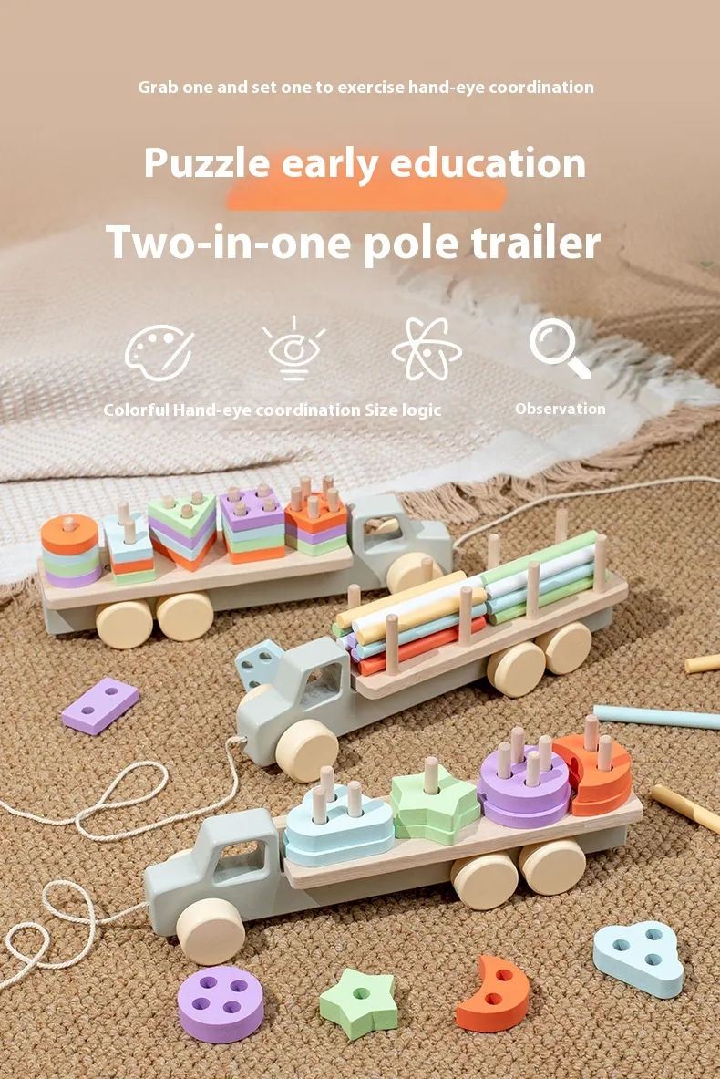 Crafted from high-quality, eco-friendly wood, this educational toy is safe for babies and toddlers, ensuring that your child can play, learn, and grow without concern. With its child-friendly design and engaging functionality, the Wooden Children's Trailer Puzzle Block Toy is a perfect addition to any child's toy collection.