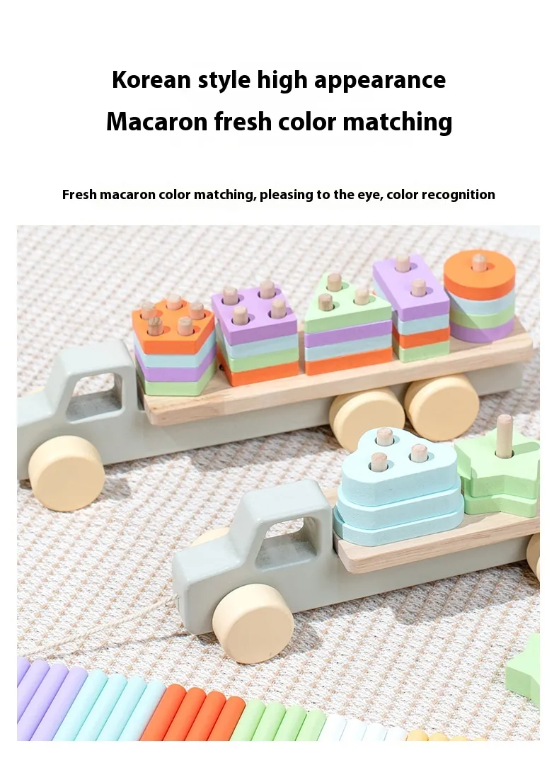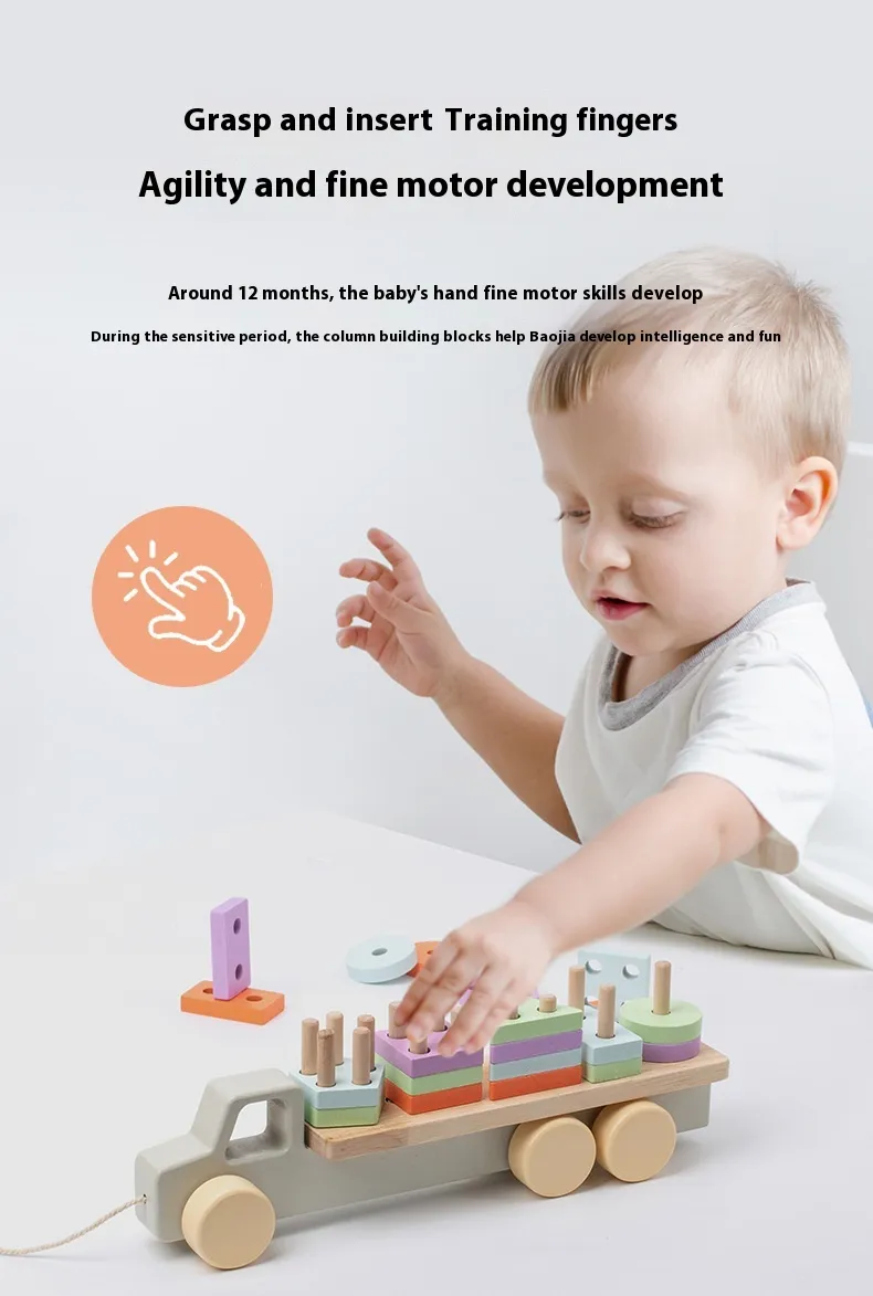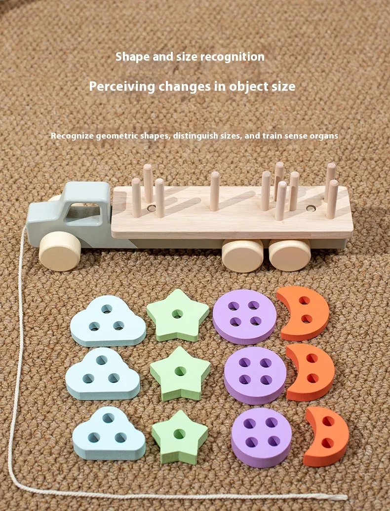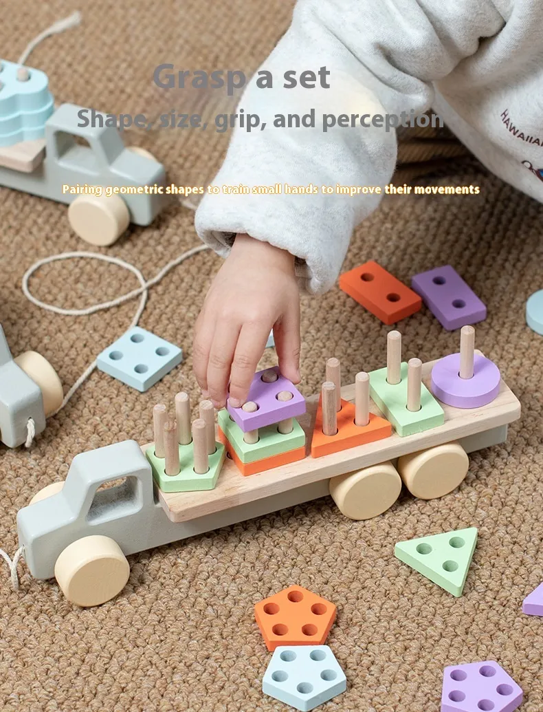 Crafted from high-quality, eco-friendly wood, this educational toy is safe for babies and toddlers, ensuring that your child can play, learn, and grow without concern. With its child-friendly design and engaging functionality, the Wooden Children's Trailer Puzzle Block Toy is a perfect addition to any child's toy collection.