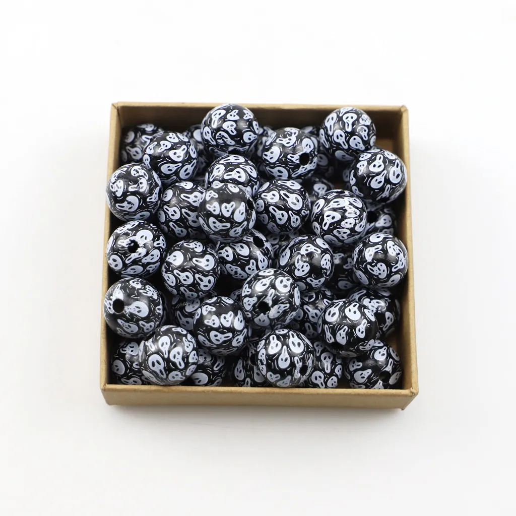 Color: Halloween Wooden Beads - White 16MM Ghost Face Single sided Printing, Halloween Wooden Beads - Black Bottom White 20MM Spider Web,