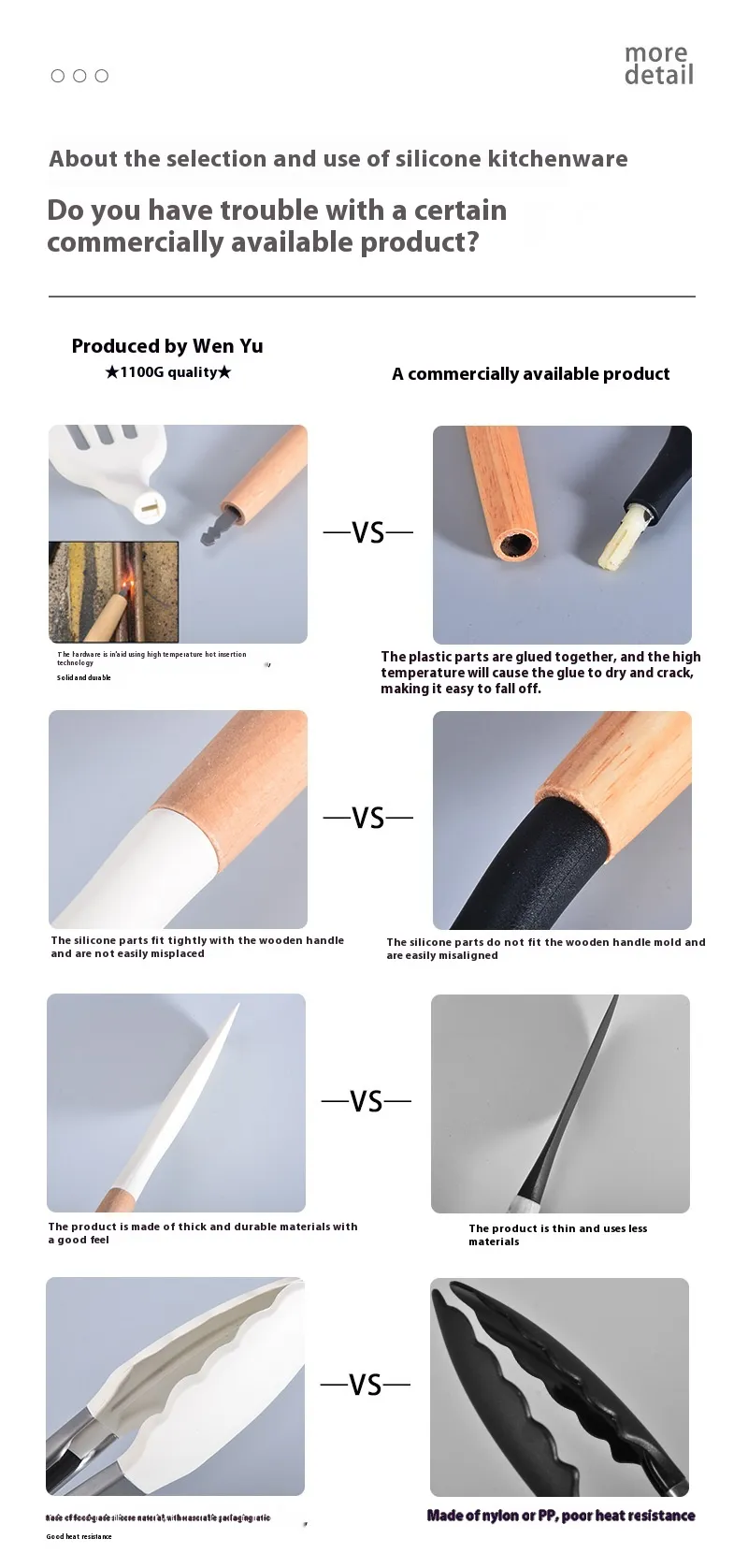 Key Features of the Wooden Handle Silicone Kitchenware Set
