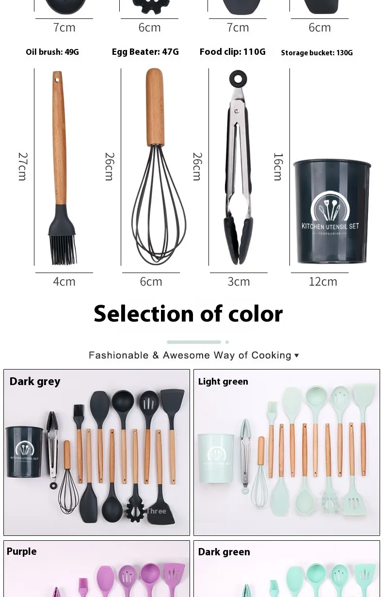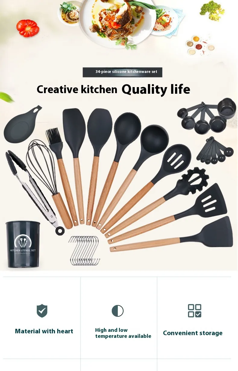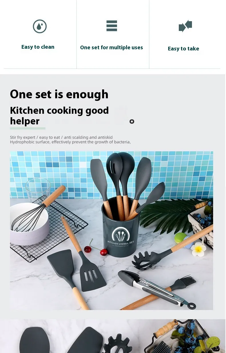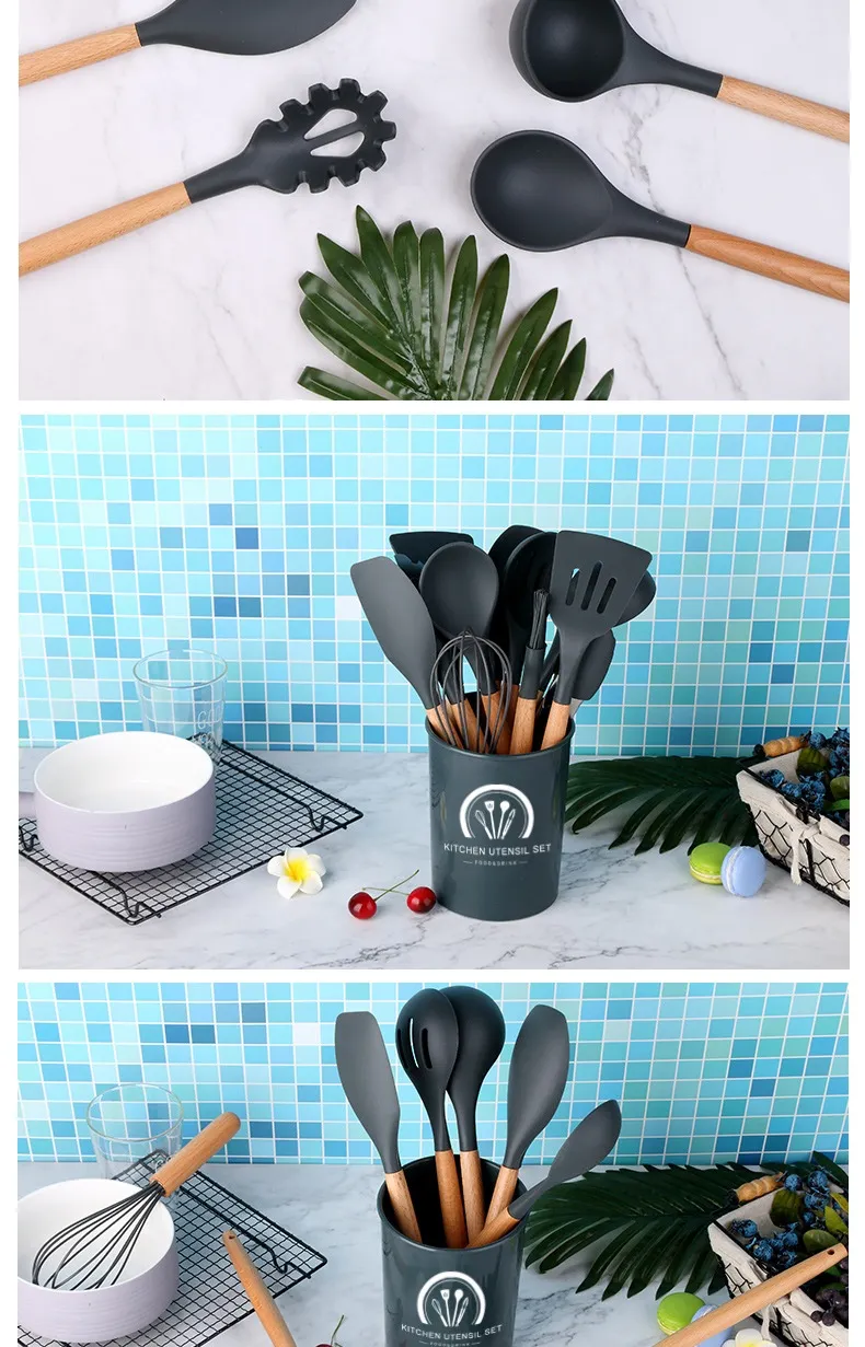 Introduction to the Wooden Handle Silicone Kitchenware Set