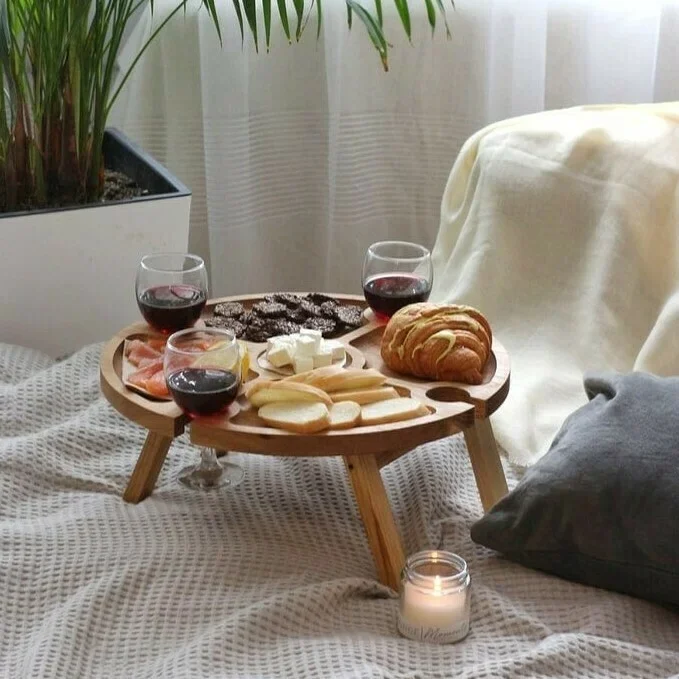 🥂Organizer-table made of wood. It is suitable for all those who like to enjoy a glass of wine with delicious cheese or fruit.