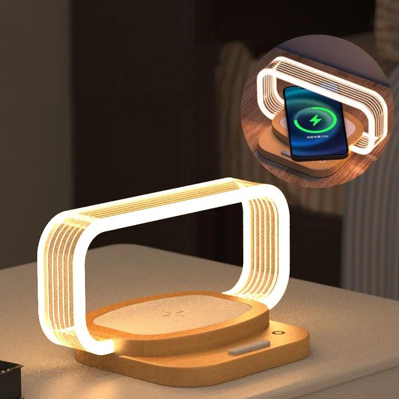 Wooden Mobile Phone Wireless Charger Small Night Lamp