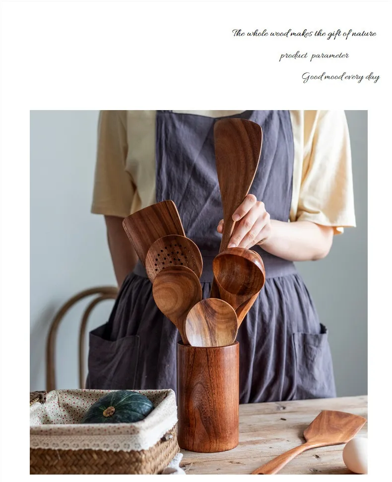 Wooden Non-stick Pan Kitchenware Wooden Turner Long Handle Spatula Kitchen Tools