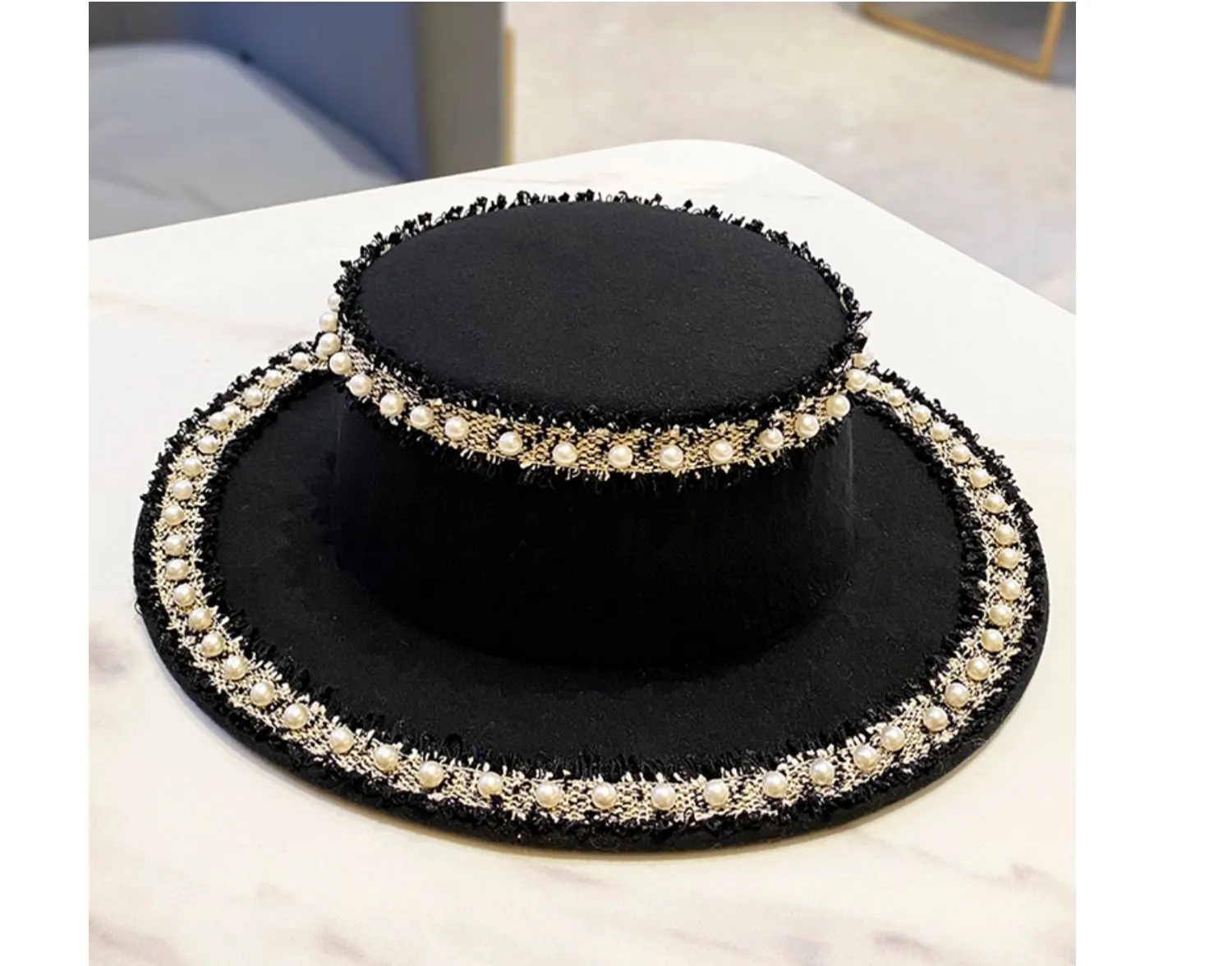 Color: Black Pearl wool wide hat, white pearl wool wide hat,