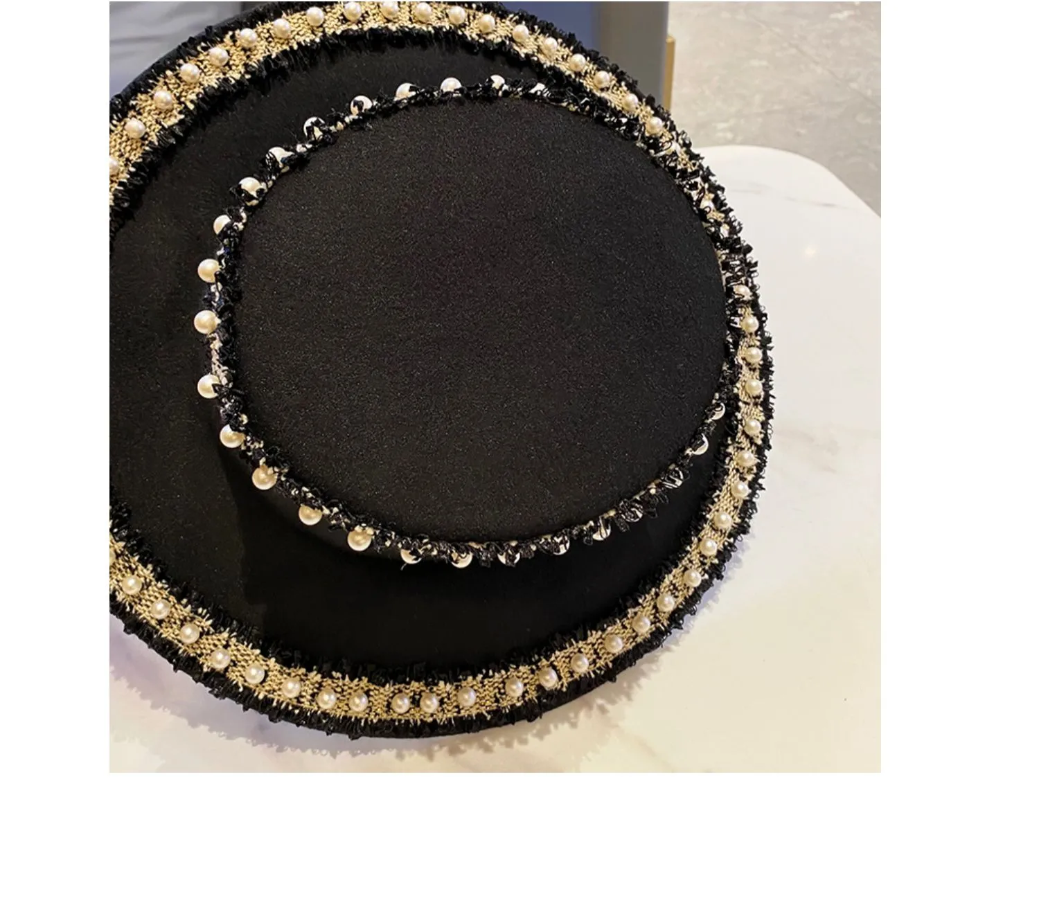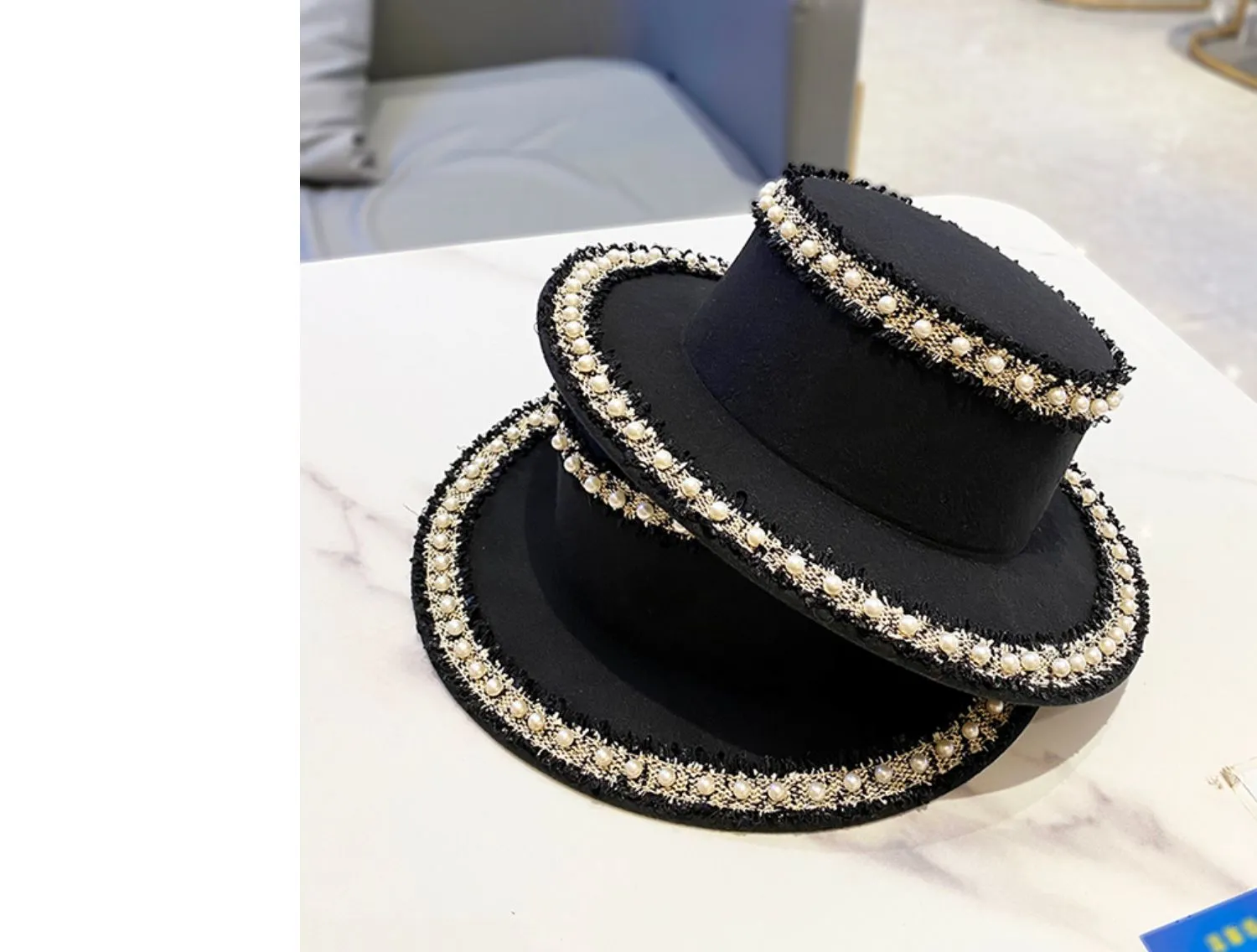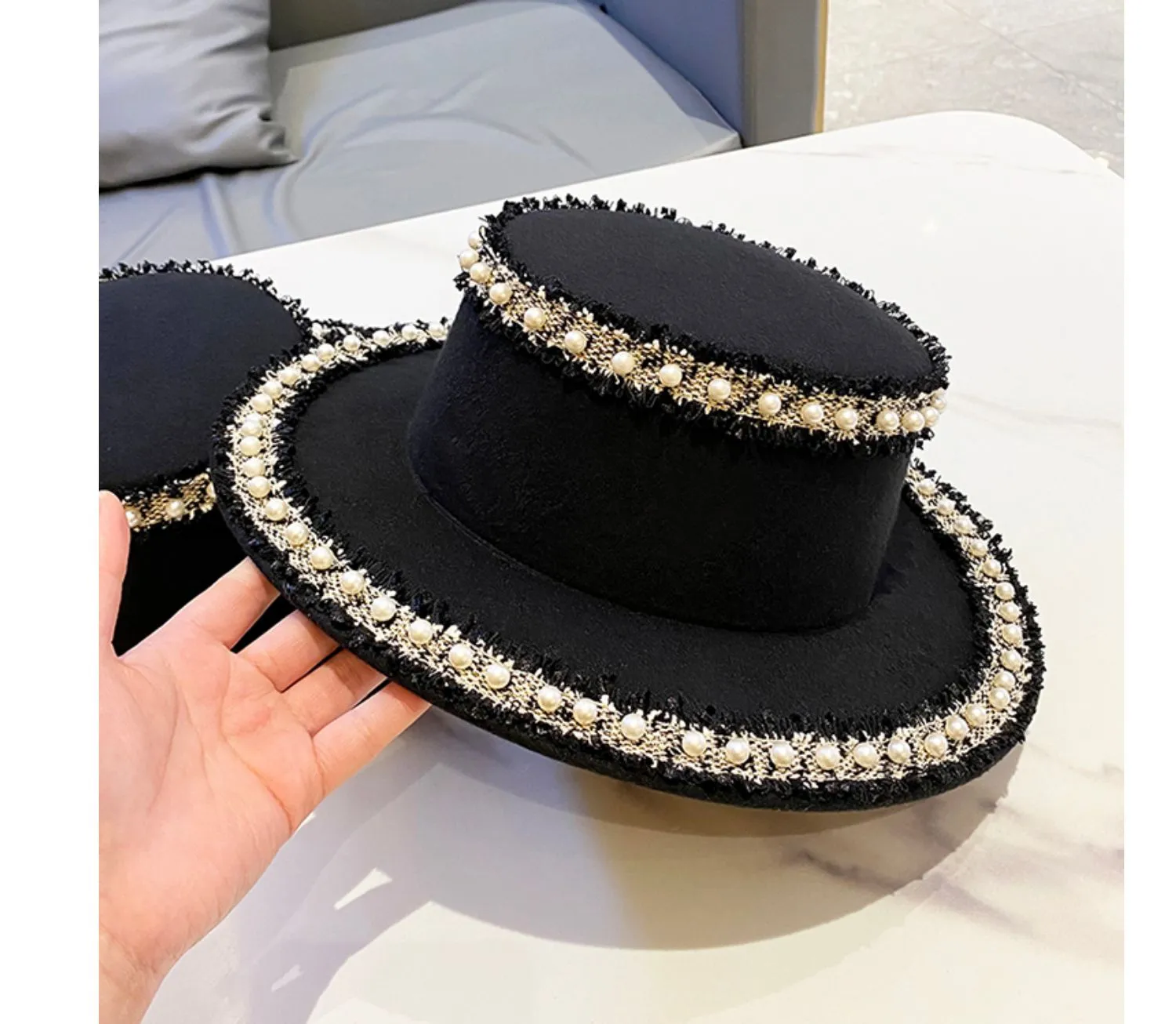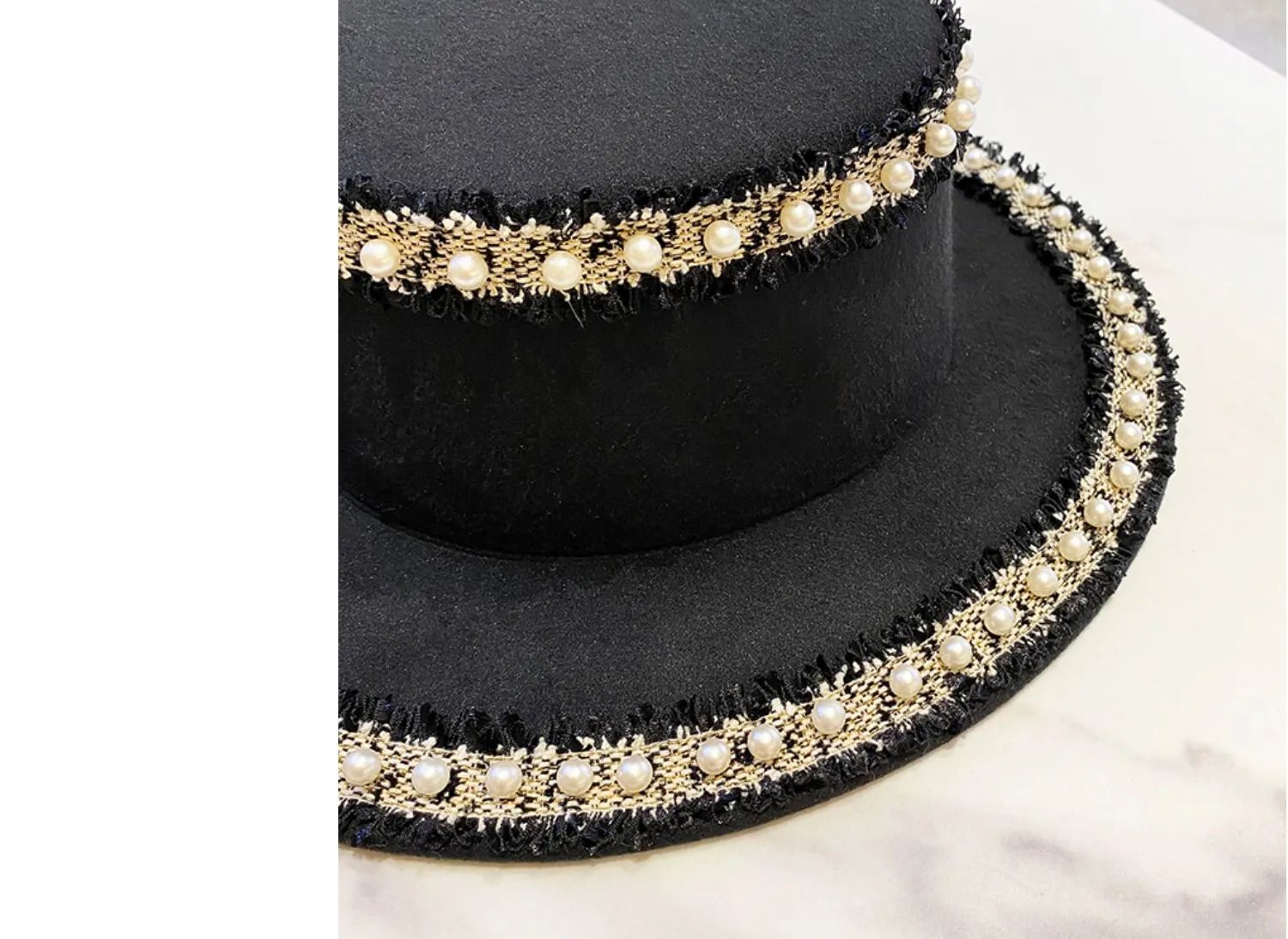 Woolen Hat Women's Flat Pearl Top Hat Bucket Hat