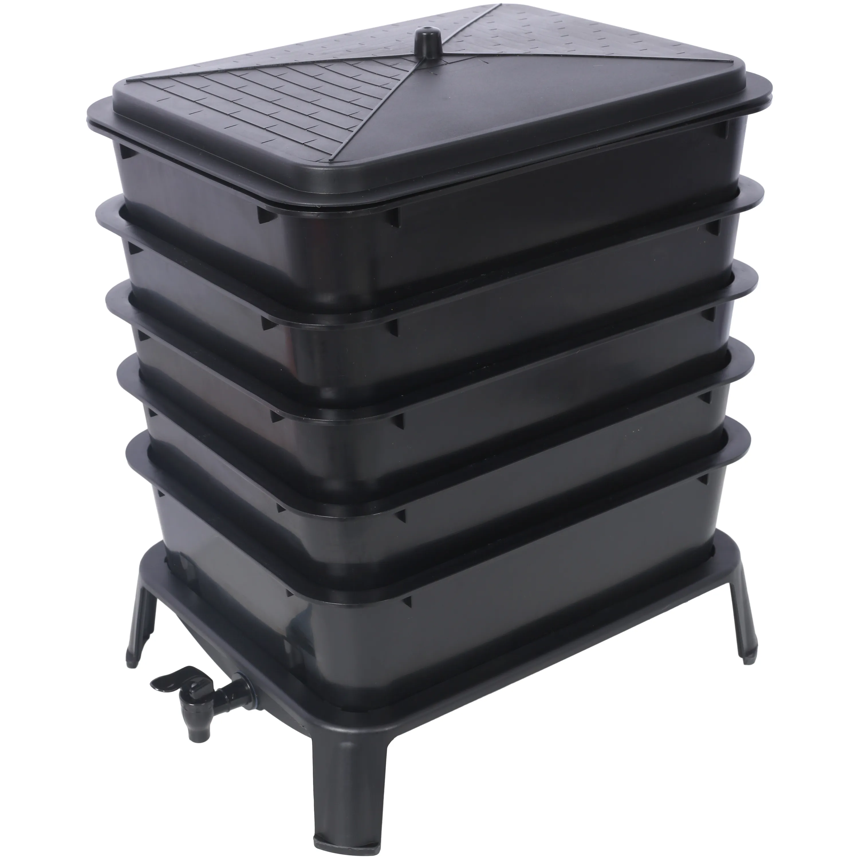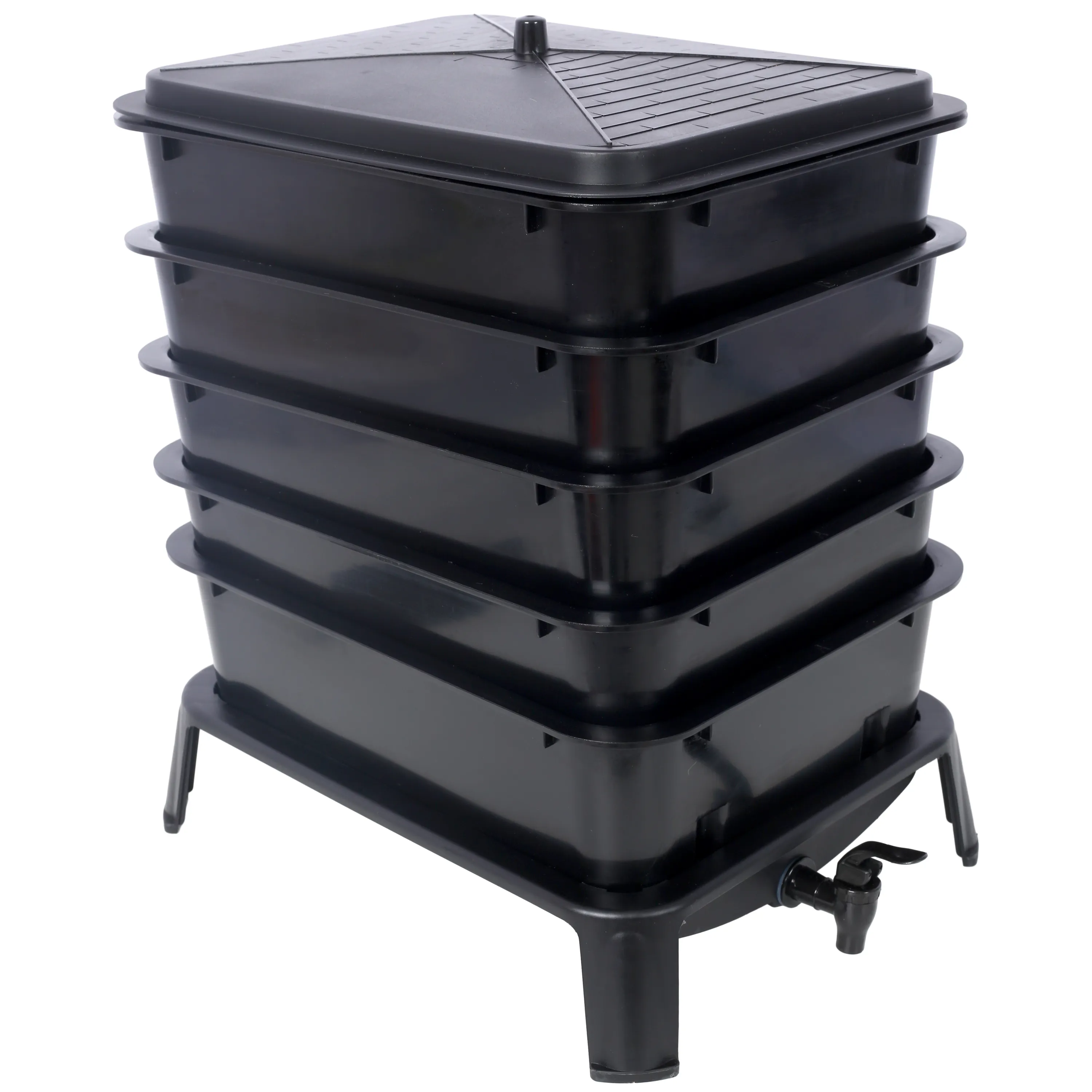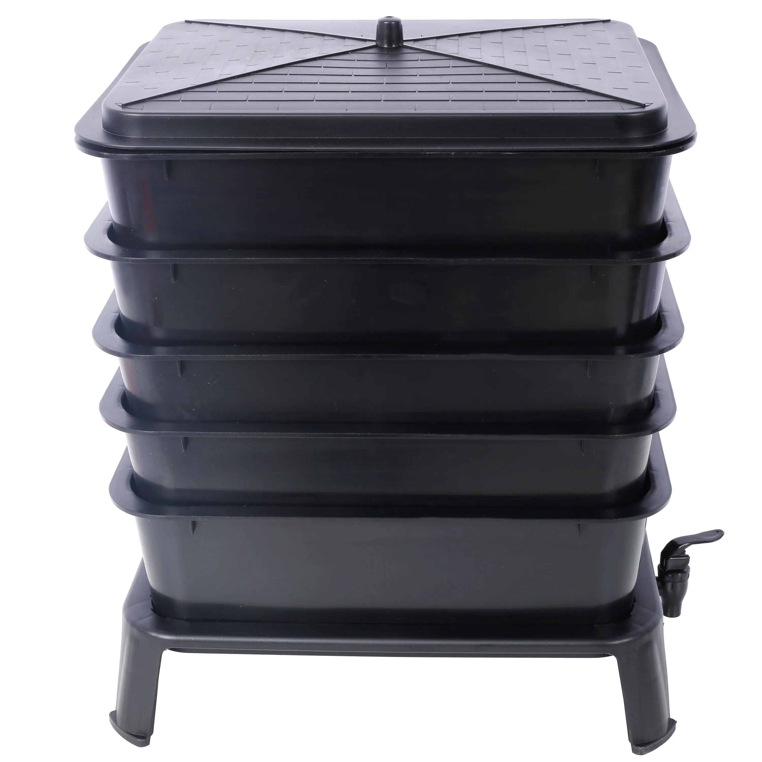 - EASY TO SET UP AND USE: Assemble in just 5 minutes with included detailed instructions. The stackable system makes adding waste and collecting compost hassle-free. A convenient spigot at the base allows for easy collection of nutrient-packed worm tea.