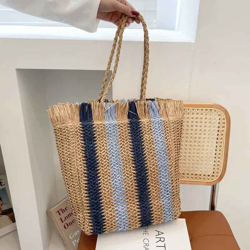- Woven Stripes Design: A classic striped pattern that evokes a coastal, summery feel—perfect for beach trips or casual outings.