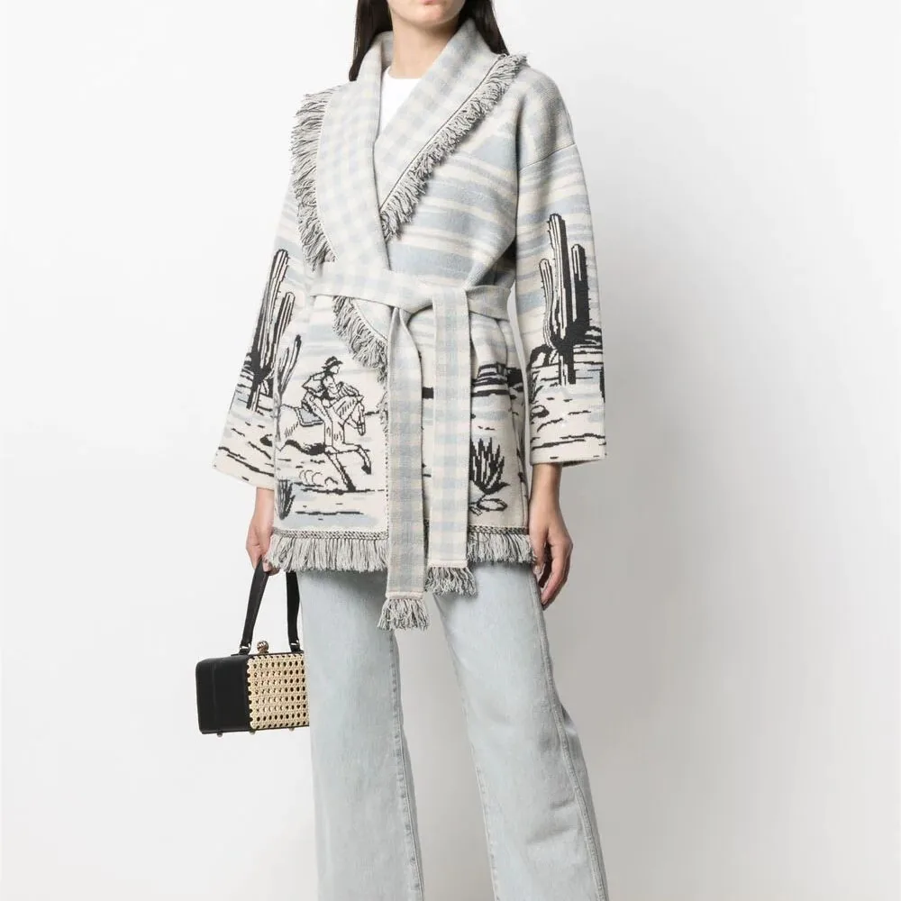 Stand out with the distinctive jacquard pattern accented with playful tassels, adding a touch of artistic flair to your ensemble.