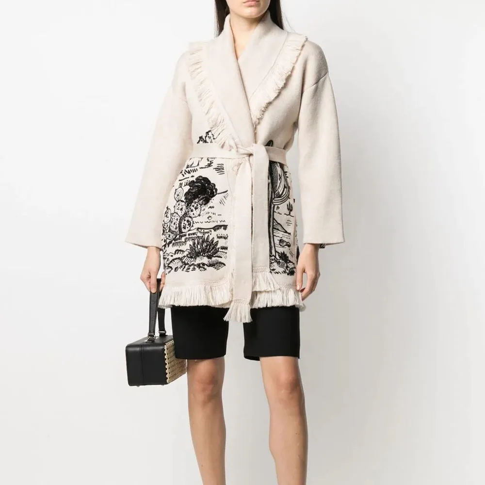 WQJGR Cardigan Sweater Women Wool Knitted Tassel Doodle Jacquard Loose Full Sleeve High-Quality Cashmere Winter Jacket