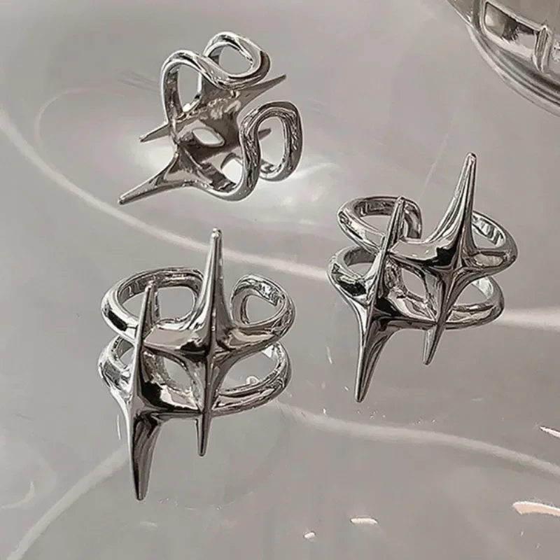 Y2K Hip Hop Silver Color Copper Stars Open Rings for Women Men