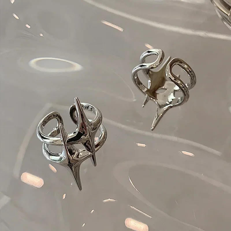 Y2K Hip Hop Silver Color Copper Stars Open Rings for Women Men