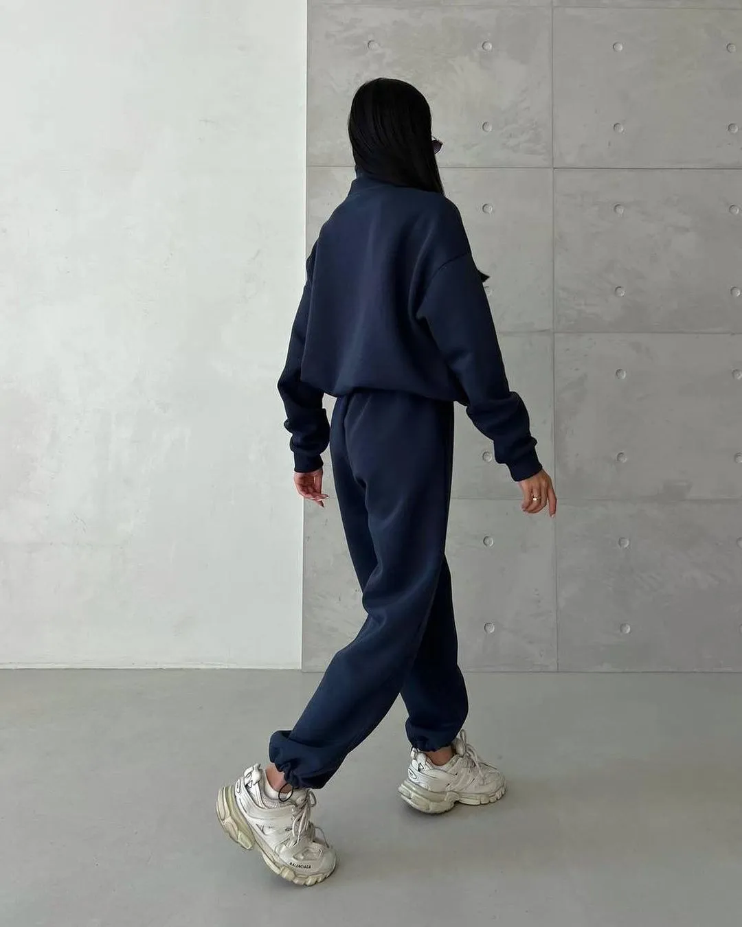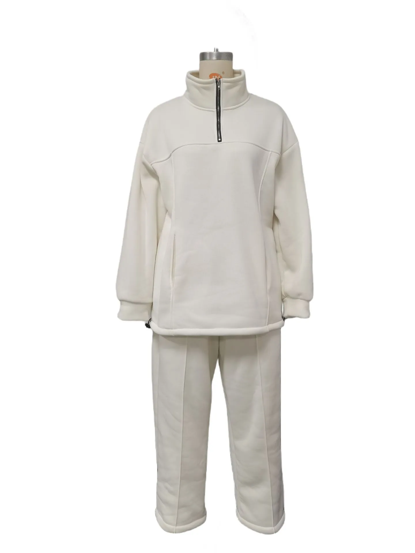 The jacket features a zipper closure and contrasting colors, offering a bold Y2K-inspired look that blends sporty chic with contemporary streetwear. The fitted design provides warmth without sacrificing style, making it perfect for outdoor activities or casual meetups. With its stand-up collar and elastic cuffs, the jacket ensures a snug, cozy fit that keeps the cold at bay, while allowing for ease of movement. The matching casual pants offer a comfortable, relaxed fit with an elastic waistband and adjustable drawstring, ensuring that you stay comfortable whether you're on the go or lounging at home.