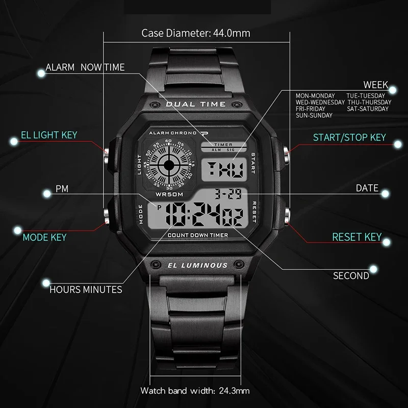 - The stainless steel strap and modern digital face provide a sleek appearance, ideal for both casual and formal settings.