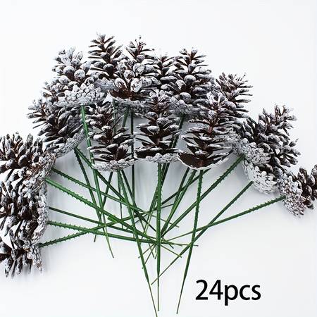 The YIMUWN 24pcs Artificial Christmas Pine Cone Branch Set features beautifully crafted brushed white plastic pine cones paired with realistic evergreen sprigs. These festive picks are perfect for enhancing Christmas trees, wreaths, garlands, table centerpieces, DIY crafts, gift wrapping, floral arrangements, photography props, and holiday home décor.