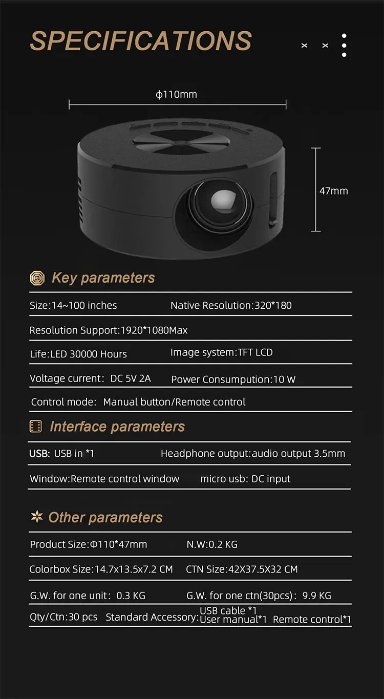 Portable and Compact: Weighing just a few pounds, the mini portable projector is easy to carry, making it