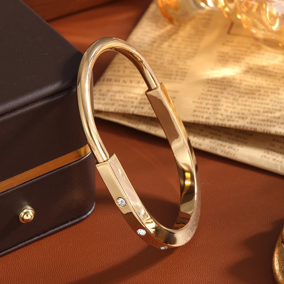 With its luxurious 18K gold color finish and stainless steel construction, this bangle offers the elegance of high-end jewelry at an affordable price. You get the look of fine jewelry without the hefty price tag, making it a fantastic value for anyone looking to add a stylish, durable piece to their collection.