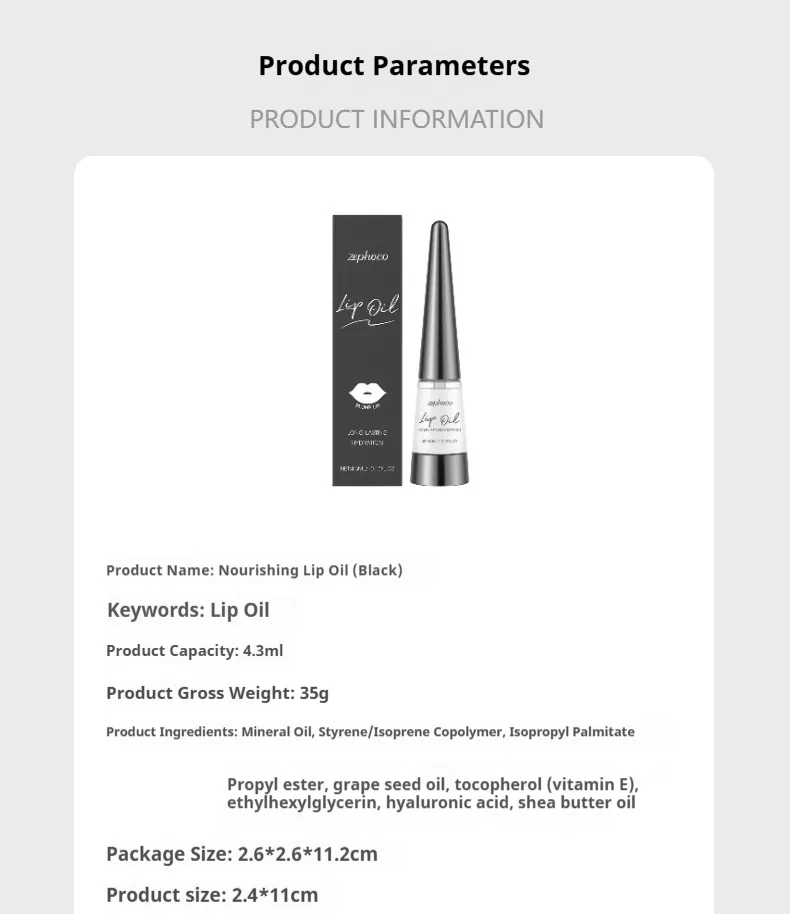 - Product type: Nourishing Lip Oil (Black)