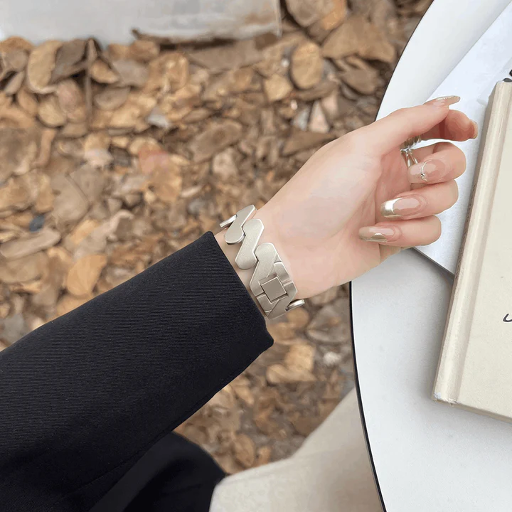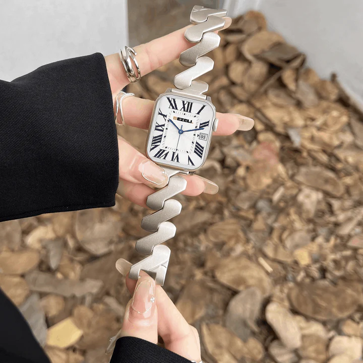 Stand out with elegance, the curves of the Zigzag links beautifully compliments your wrist. The tasteful metallic sheen radiates refinement.