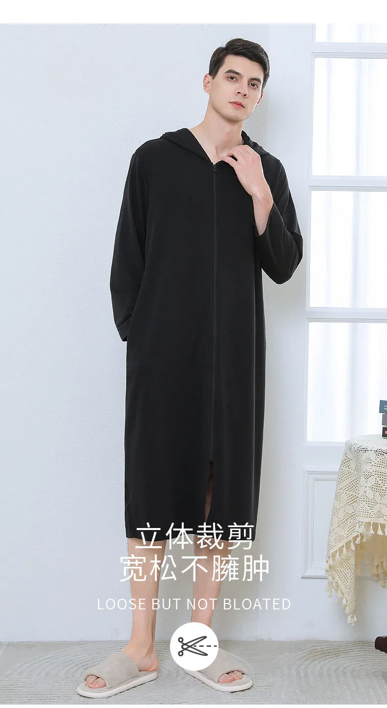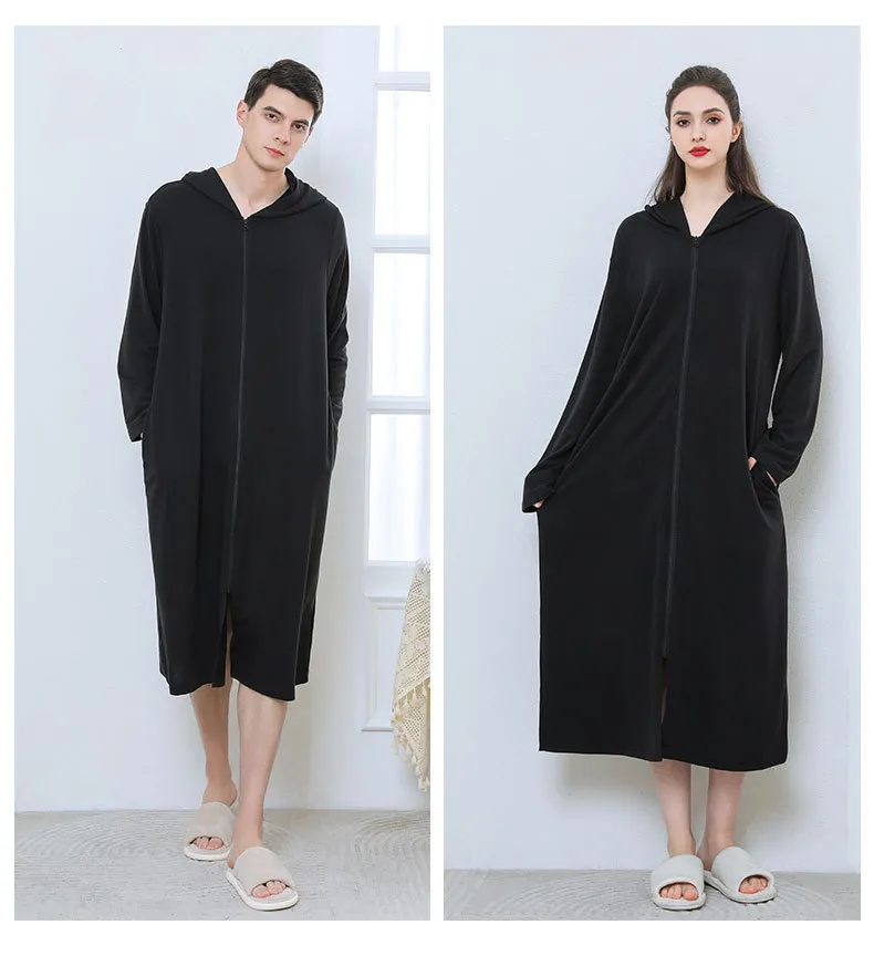 The Zipper Bathrobe Couple Hooded Nightgown Thin Pajamas offer the perfect combination of comfort, style, and convenience. Made from soft, breathable fabric, these pajamas keep you and your partner cozy and comfortable. The hoodie adds extra warmth, while the zipper design provides easy wear. Whether you're relaxing together or getting a good night’s sleep, this pajama set is a must-have for couples who value both comfort and style.