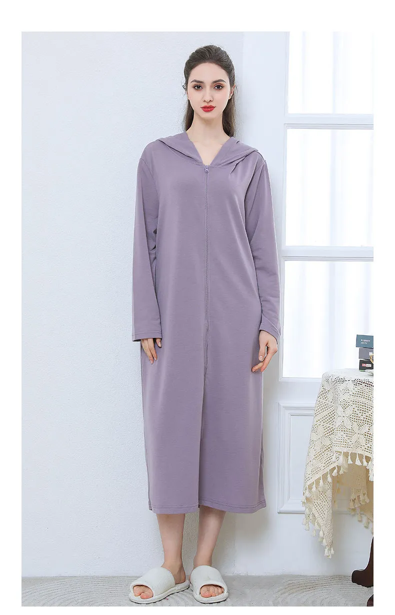 Zipper Bathrobe Couple Hooded Nightgown Thin Pajamas