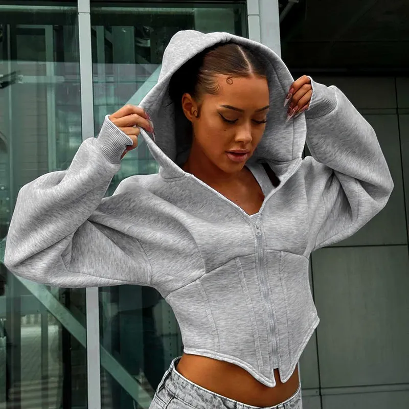 Zipper Hoodie Cardigan Y2K Ins Fashion Street Long Sleeve Corset Jacket Women Clothing
