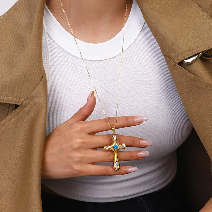 The necklace features carefully inlaid zircon stones that reflect light beautifully, adding a refined sparkle to your outfit. Perfect for both everyday wear and special occasions.