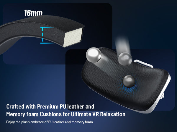 Soft PU leather wrapped memory foam cushions deliver cloud-like comfort for extended VR sessions.